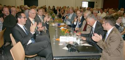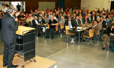 Dazu hätte dann eventuell tatsächlich das Foyer der Halle ausgereicht. Der wahre Grund – und darum waren es deutlich mehr als 300 Gäste, war, dass mit Wolfgang Bosbach einer der profiliertesten, bekanntesten und beliebtesten deutschen Politiker erwartet wurde. Und zwar so sehr, dass der Vorhang, der anfangs die Halle noch etwas eingeschränkt hatte, auch noch geöffnet werden musste.
