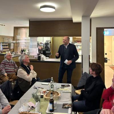 Womit der Grundstein gelegt war für den Abschluss dieser Winterwanderung in der Klosterschänke (auch deren Bedeutung und Herkunft hatte Dr. Lilie erklärt.) Auch hier führte der CDU-Stadtverbandsvorsitzende Tobias Bronner sehr behutsam und mit der richtigen Tonalität durch den Teil der seit Jahrzehnten so beliebten Winterwanderung. Was Maria-Lena Weiss hautnah erlebt und dann so widergegen hat, dass „nun jeder wissen kann, dass wir keinerlei Kooperation mit der AfD eingehen werden, sondern dass es darum geht, mit unserem Programm in diese Wahlauseinandersetzung zu gehen. Mit dem Ziel, dass unser Land wieder nach vorne kommt“, war das eine. Das andere, was auch Stefan Teufel als Landtagsabgeordneter feststellte: „Das weitere und ebenfalls wichtige ist die desolate wirtschaftliche Lage. Und mir geht es ganz besonders um den gesellschaftlichen Zusammenhang, darum, dass unsere Gesellschaft nicht weiter auseinanderdriftet.“